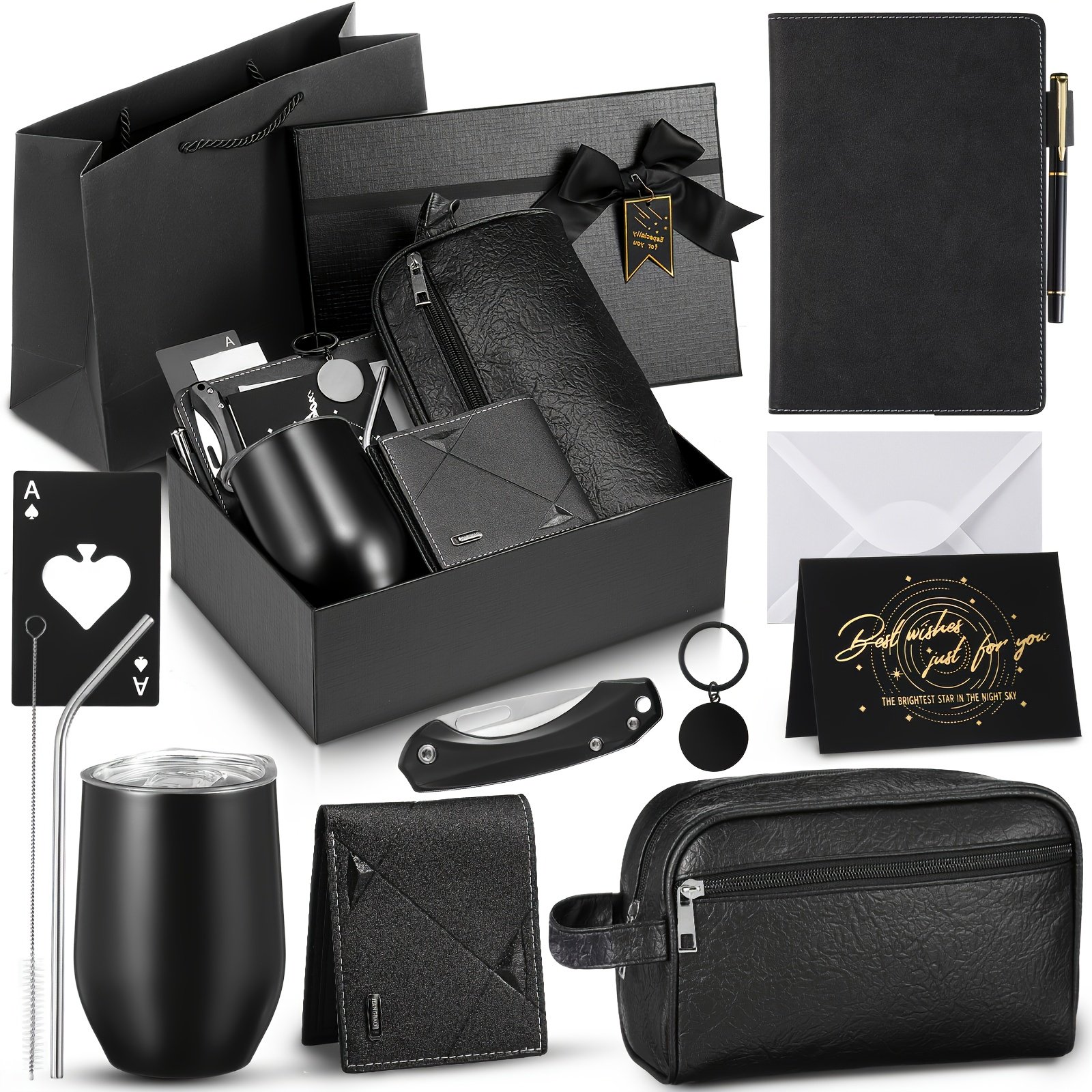 13pcs Men’S Birthday Gift Basket Set – 12oz Tumbler, Toiletry Bag, and Accessories – Ideal for Dad, Boyfriend, Husband, Brother – Perfect for Valentine’S Day, Christmas, and Special Occasions, Gift Basket Set|Sleek Black Design|Durable Construction, Gift Basket for Men