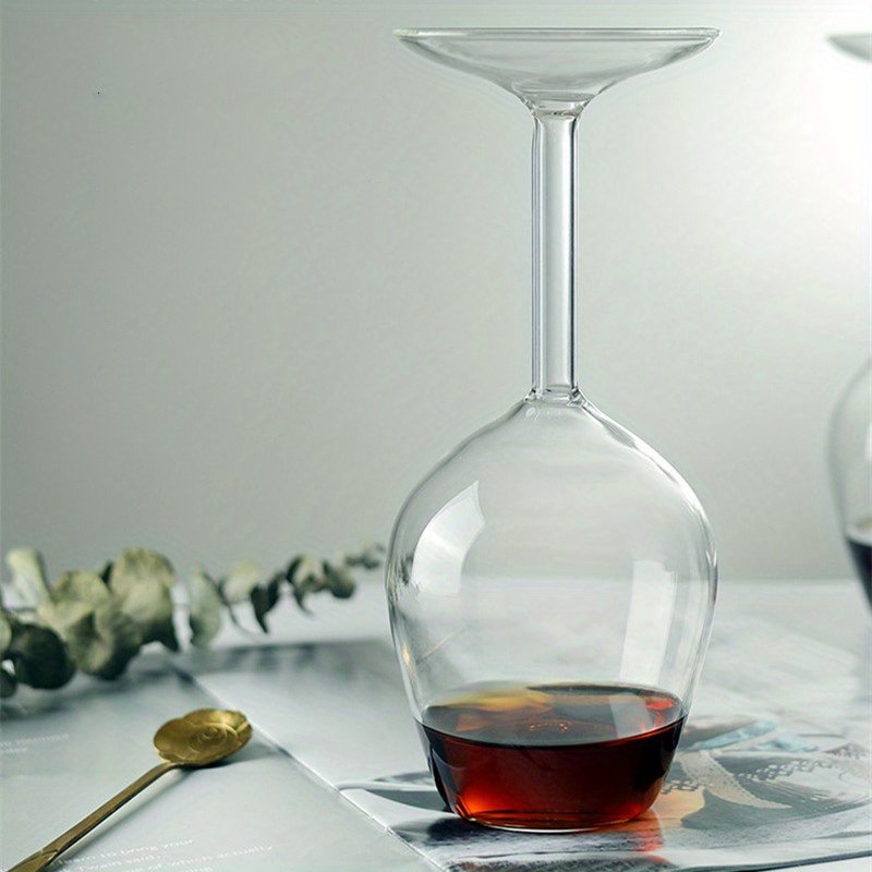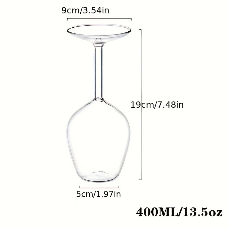 1pc 13.5oz BPA-Free Reusable Upside-Down Wine Goblet Glass – Hawaiian-Inspired Design, Hand Wash Only, Recyclable & Multi-Purpose for Home Bars, Restaurants, Parties, Home Bar Accessory | Elegant Glassware | Clear Glass Construction