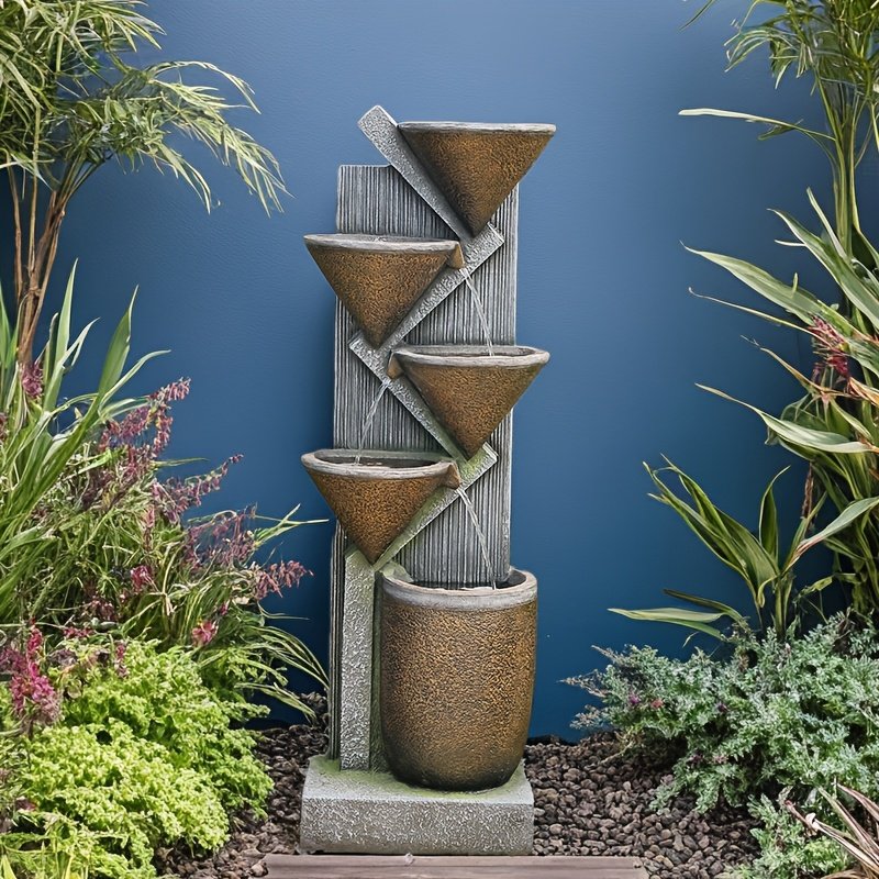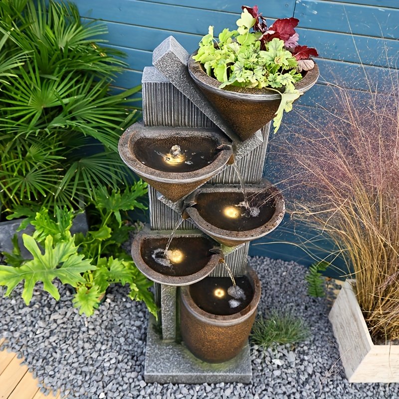 1pc Large 49.6-Inch Tiered Bowl And Light Outdoor Water Feature Fountain, Creates A Tranquil Oasis for Outdoor Living Spaces, Suitable for And Landscapes, Patios, Balconies, Lawns.