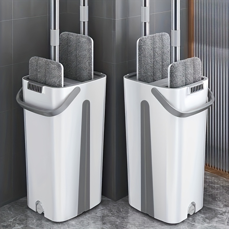 1set Easy Wring Mop and Bucket Set, Multi-Functional Dusting Mop with Washable Microfiber Cloth, Wet/Dry Use, Ideal for Tile, Marble, Hardwood Floors, Self-Cleaning Bucket, Perfect Household Cleaning Supplies and Tools, Perfect Gift for Mom – Plastic Material