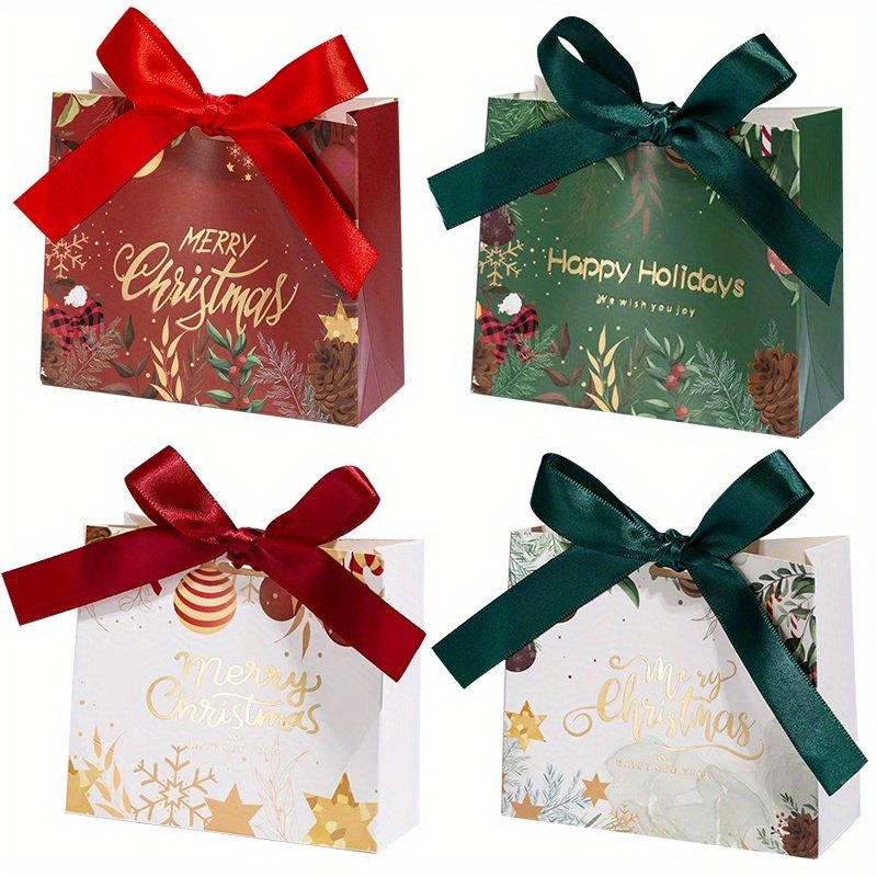 36pcs Creative New Christmas Theme Party Gift Box Packaging, 4.53×1.77 x3.94in Small Bowknot Favor Bags, Holiday Souvenir and Decoration Set