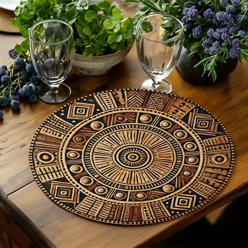 Be the first to review “4pcs African Mud Cloth Round Placemats – 15-Inch Handmade Table Mats with Earthy Tones and Traditional Geometric Patterns, Perfect for Kitchen, Dining Room, and Party Decor, Textured Tableware”
