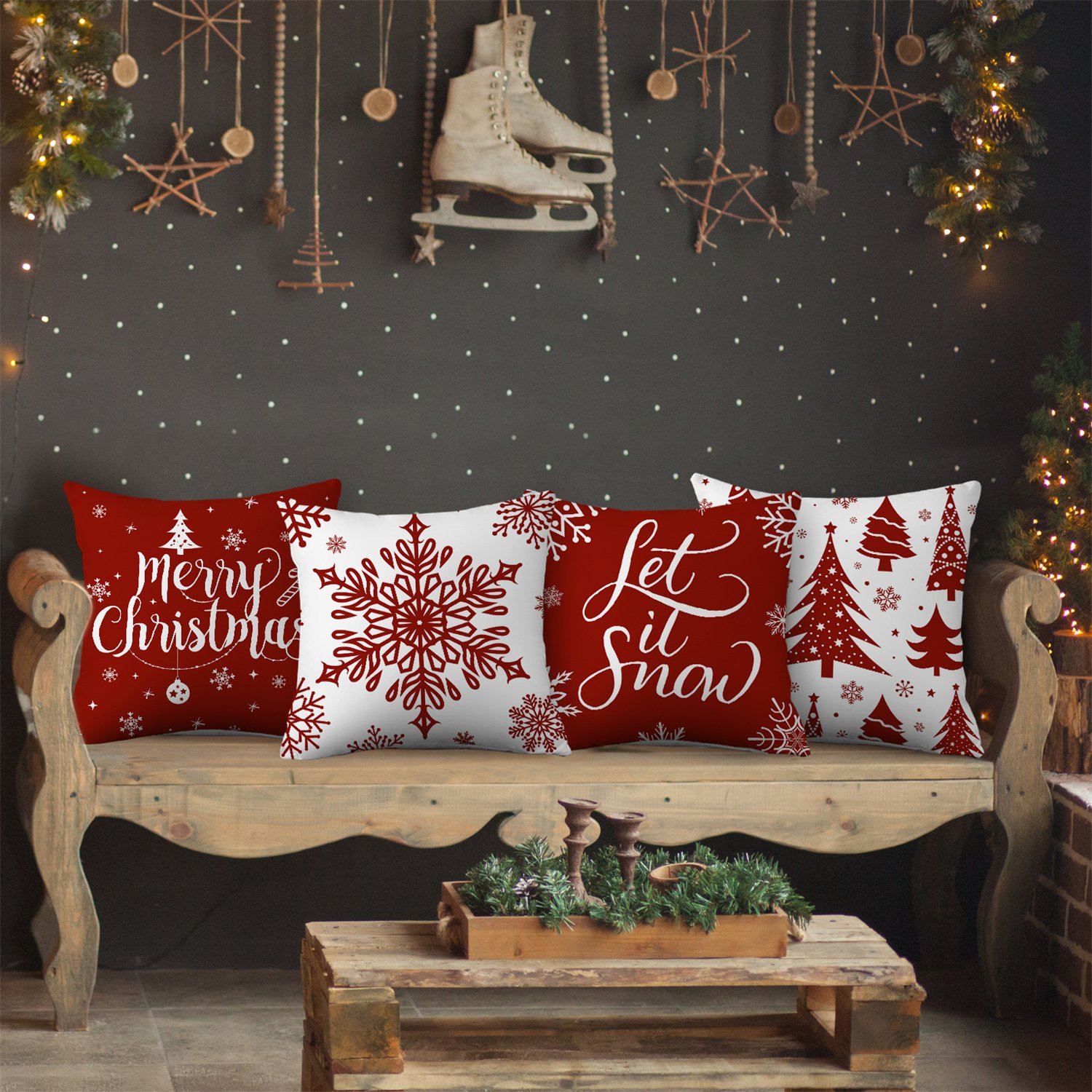 Specification: 4pcs Christmas Throw Pillow Covers – Merry Christmas Christmas Tree Snowflake Christmas Ornament Designs, Zip Closure, Farmhouse Winter Holiday Decorative Cushion Case for Bedroom Sofa Couch