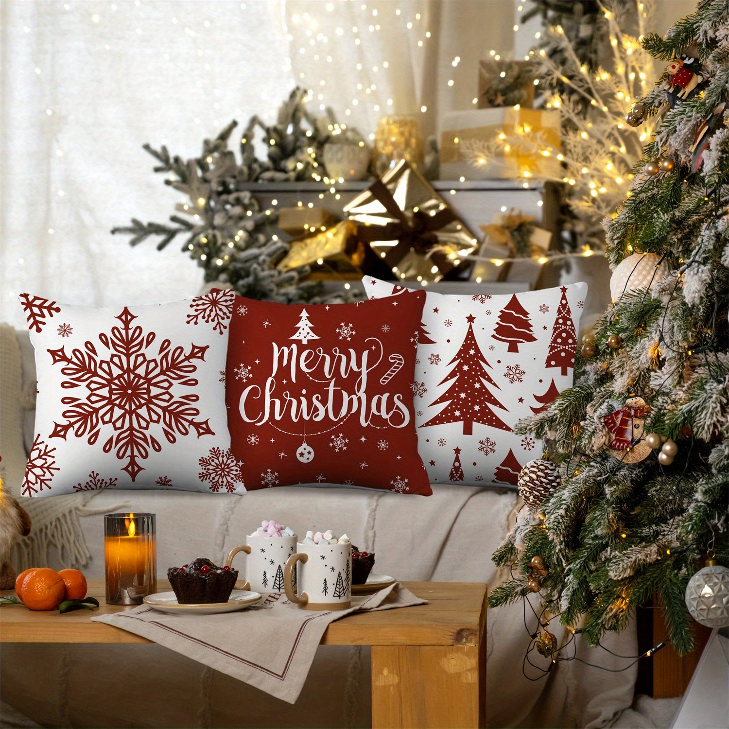 4 reviews for 4pcs Christmas Throw Pillow Covers – Merry Christmas Christmas Tree Snowflake Christmas Ornament Designs, Zip Closure, Farmhouse Winter Holiday Decorative Cushion Case for Bedroom Sofa Couch