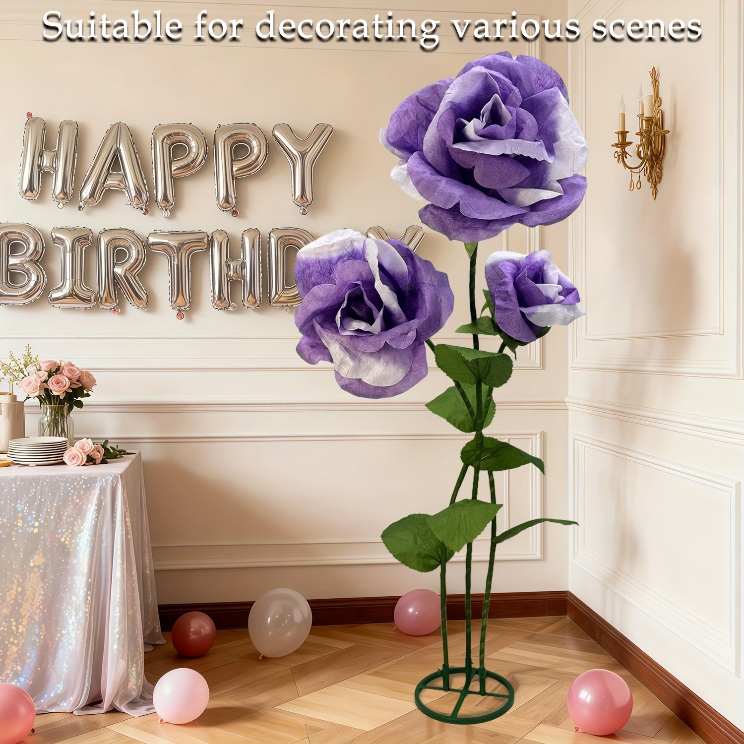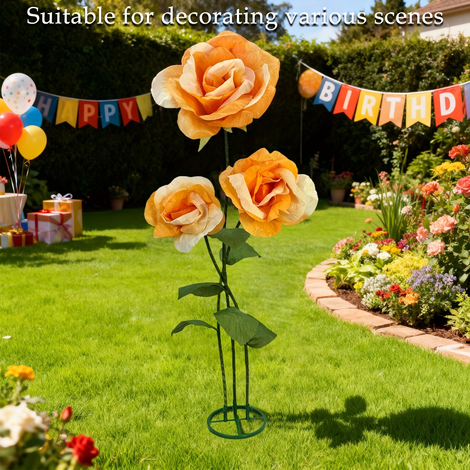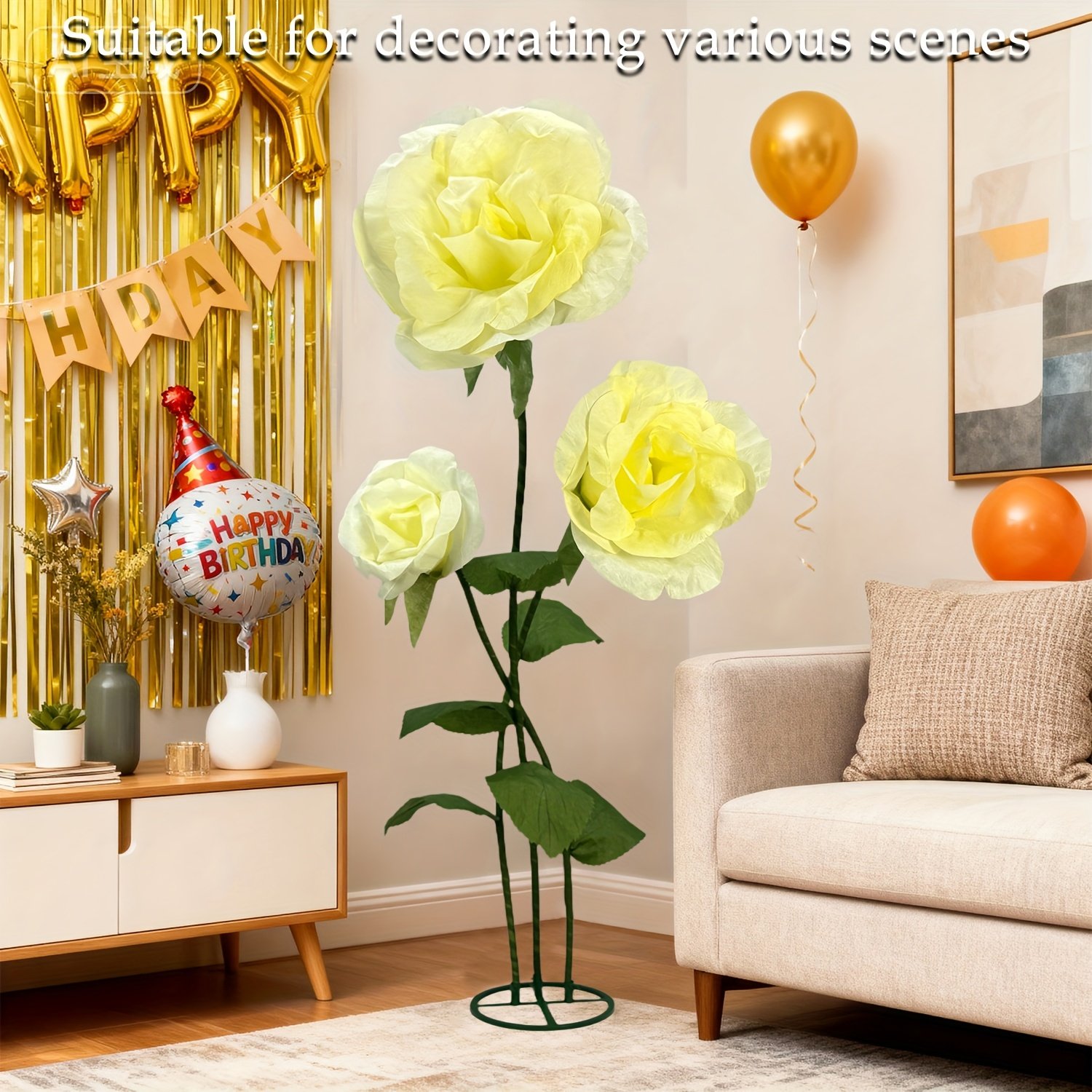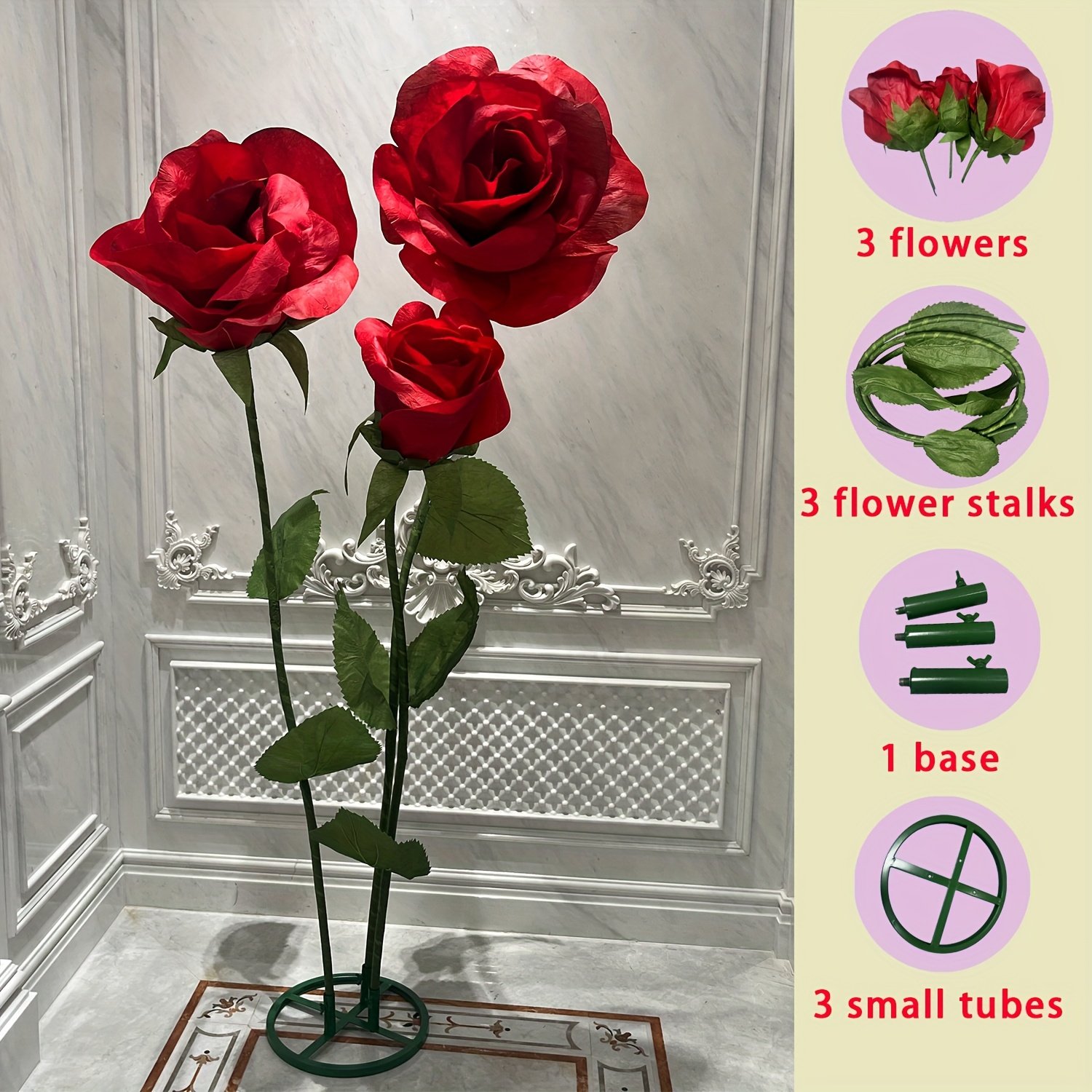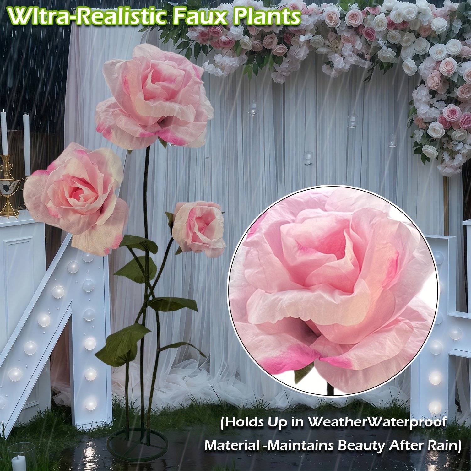Specification: 6.3ft Large Artificial Roses Flowers Decorations – Giant Fake Flower Decor with Stand, 3 Realistic Big Simulation Flowers for Wedding Arch Backdrop, Garden, Courtyard, Home, Living Room, Birthday Party, Graduation, Shop Window Display Decorations