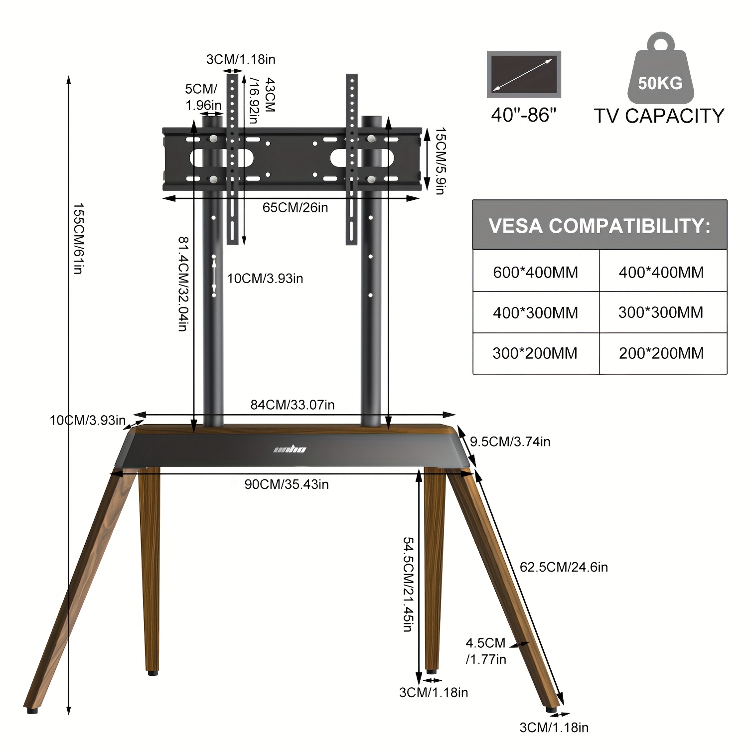 TV Weight Capacity: 50kg/ 110.23 lbs