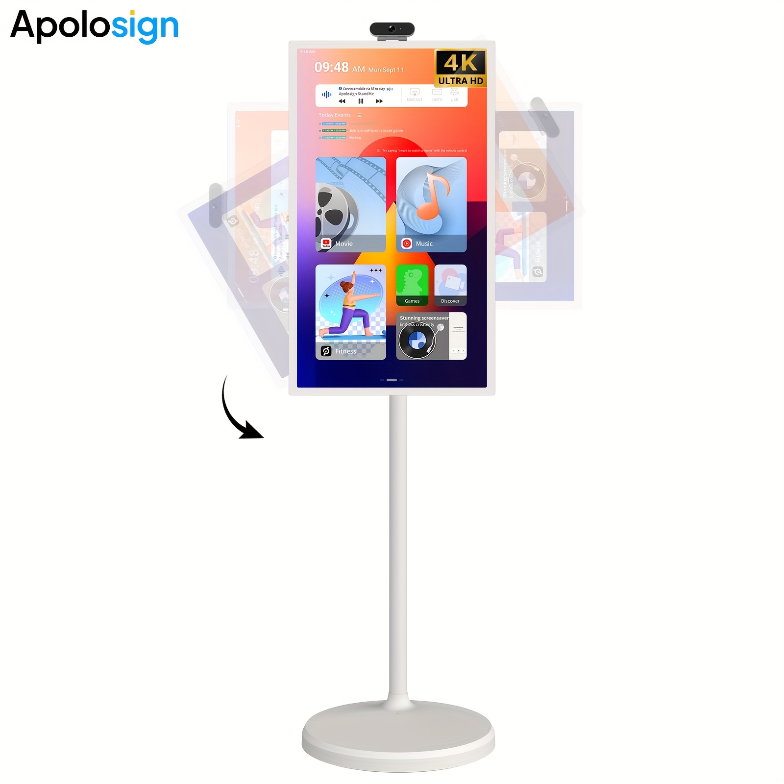 Apolosign 32-Inch 1080P Smart Portable TV First Generation | Rotatable Touchscreen, with Moving Wheels, 8GB+128GB Storage Space, 6800mAh Battery – Your Gaming and Media Jumbo Tablet on the Go