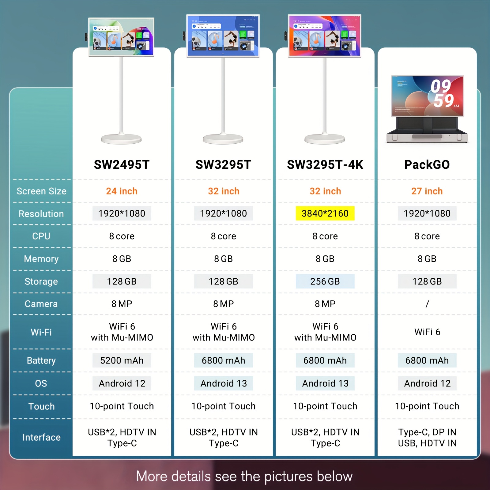 Specification: Apolosign 32-Inch 1080P Smart Portable TV First Generation | Rotatable Touchscreen, with Moving Wheels, 8GB+128GB Storage Space, 6800mAh Battery – Your Gaming and Media Jumbo Tablet on the Go