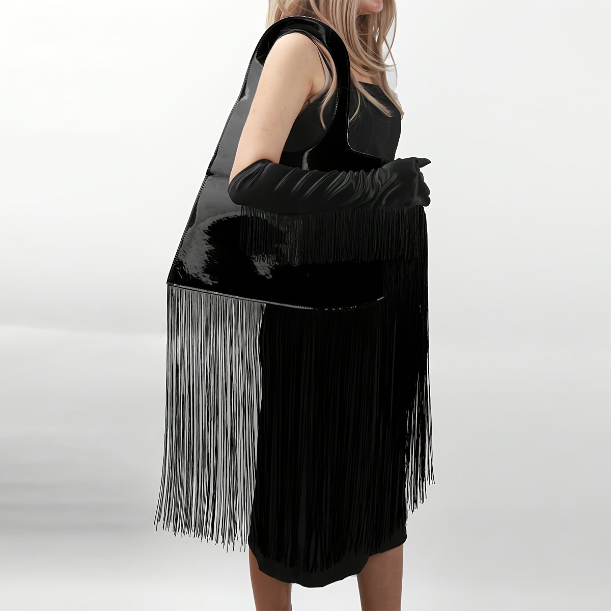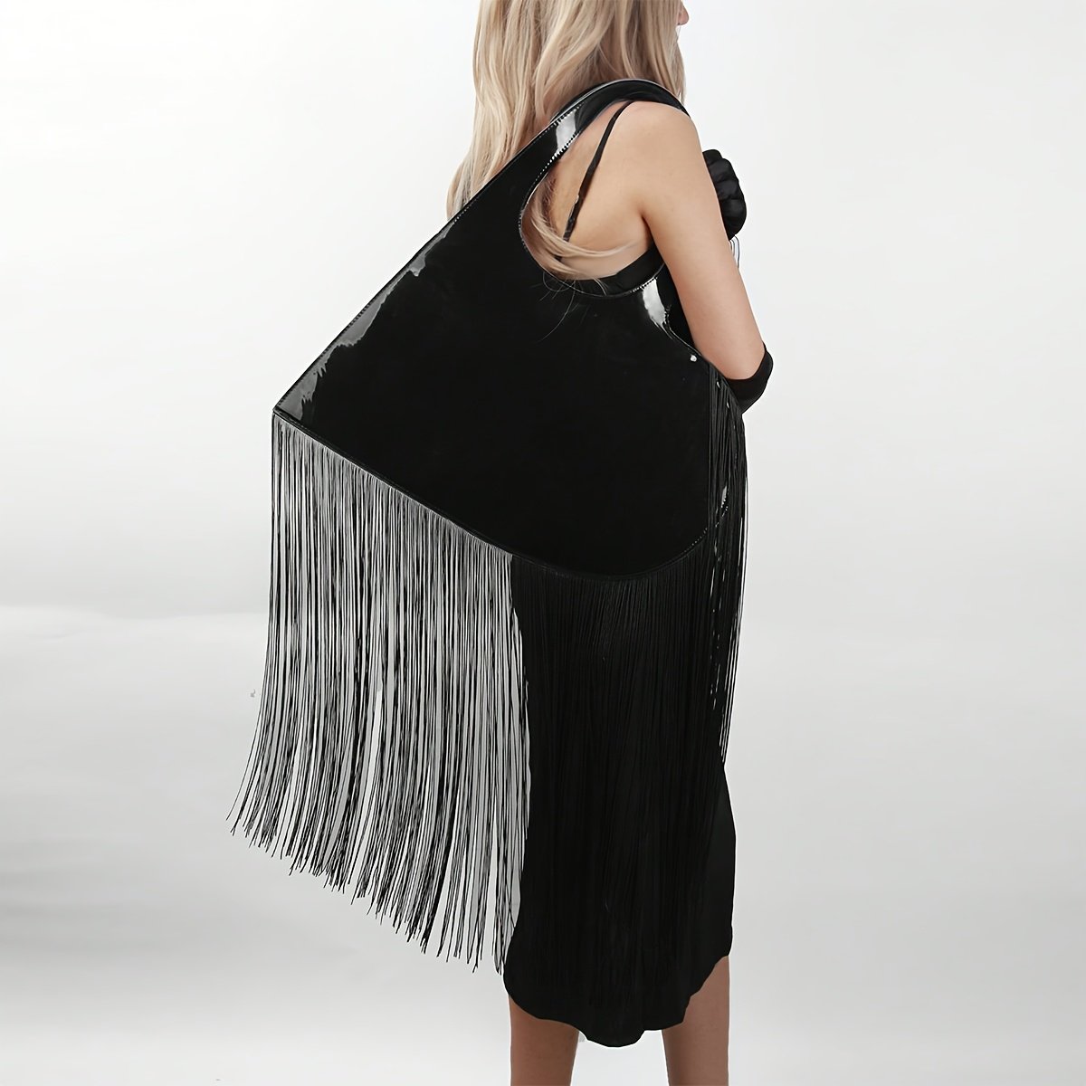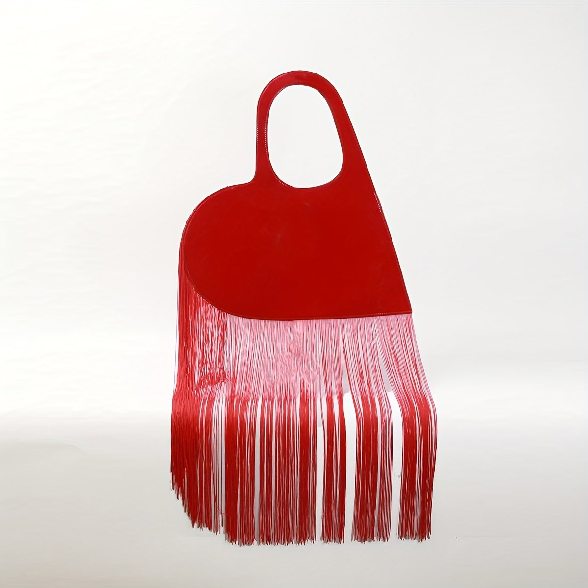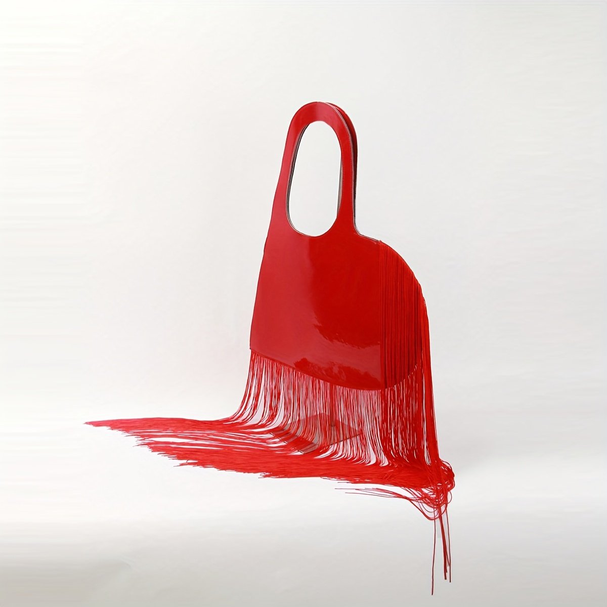CAMSSOO Women’S Large Heart-Shaped Faux Leather Tote with Ultra-Long Fringe Detail – Stylish Shoulder Hand for Parties, Gatherings & Fashion Events, Fixed Strap Design, Party Hand | Unique | Glossy