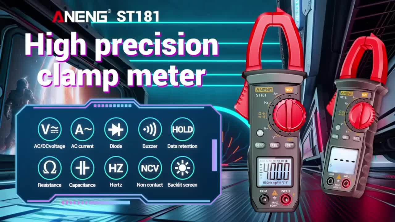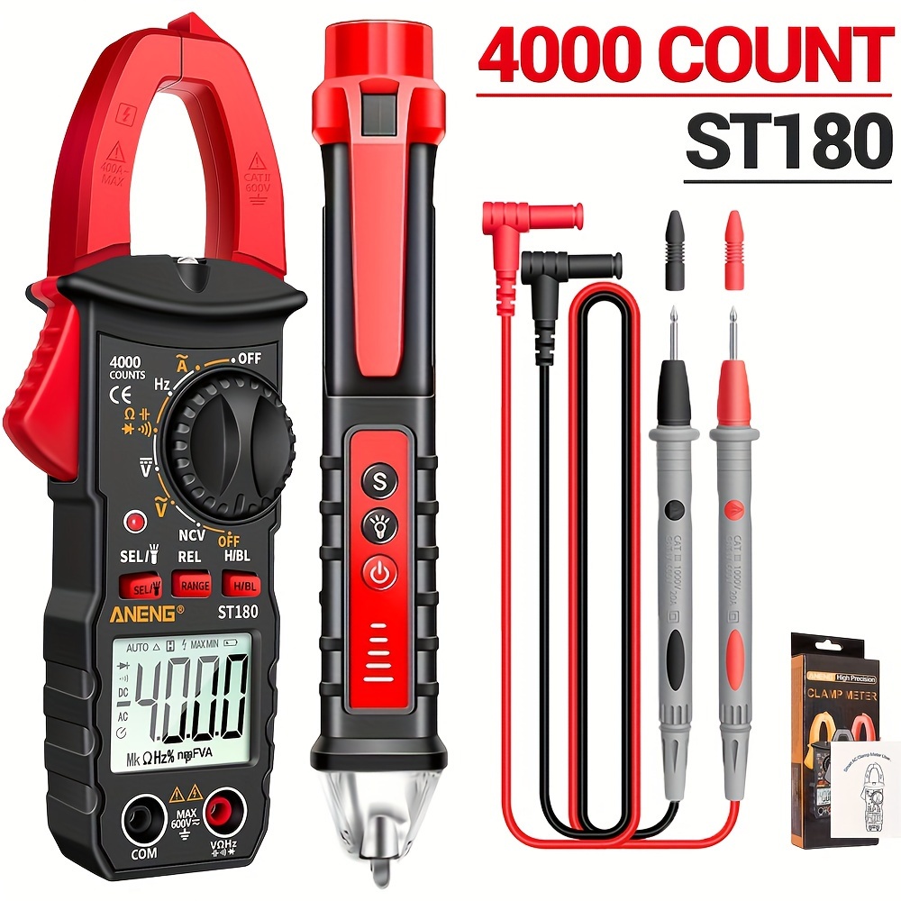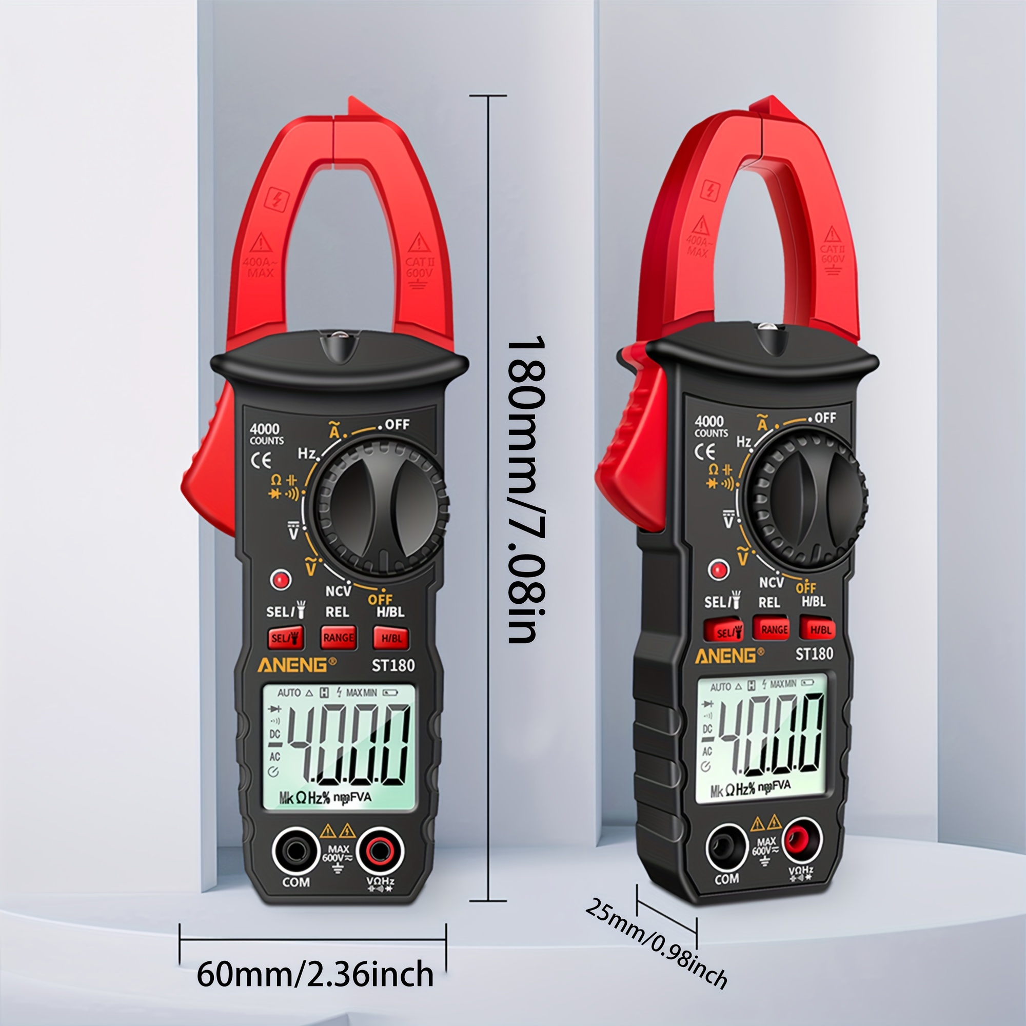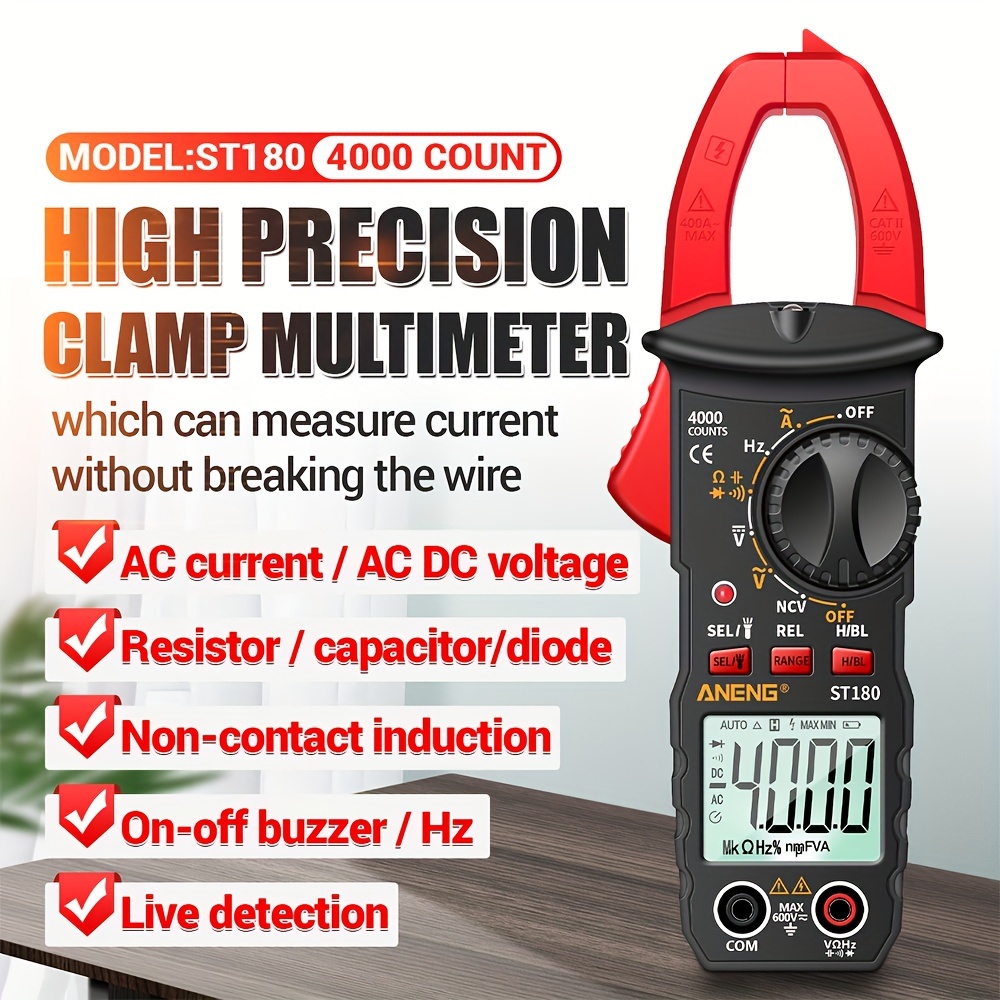 [Clamp Multimeter] 4000 Counts ST180 Clamp Multimeter Kit | Current Meter, Test Pen, Flashlight, Buzzer, Measuring Current, Voltage, Capacitance, Resistance, NVC Detection, Diode Continuity, Duty Cycle (AC Current) – Does Not Support DC