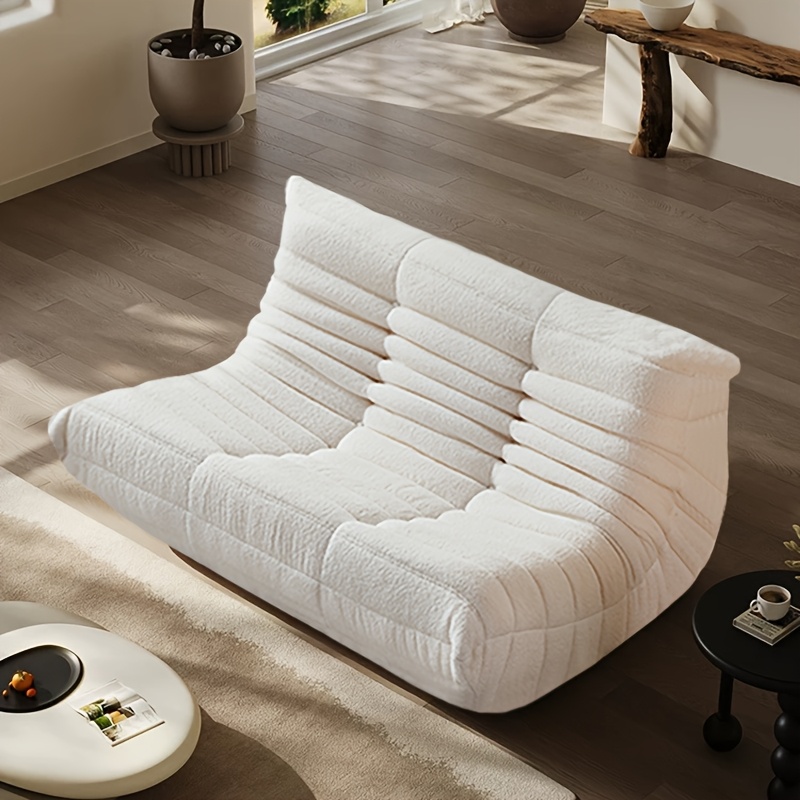 [Double Sofa Chair] Large Double Sofa, Couple’s Bean Bag Chair, Teddy Velvet, No Assembly Required | Adult Bean Bag Chair, Compression Sofa, Sofa for Two, Armless Lounge Chair, Suitable for Multiple Room Types, Creative Fireplace Chair