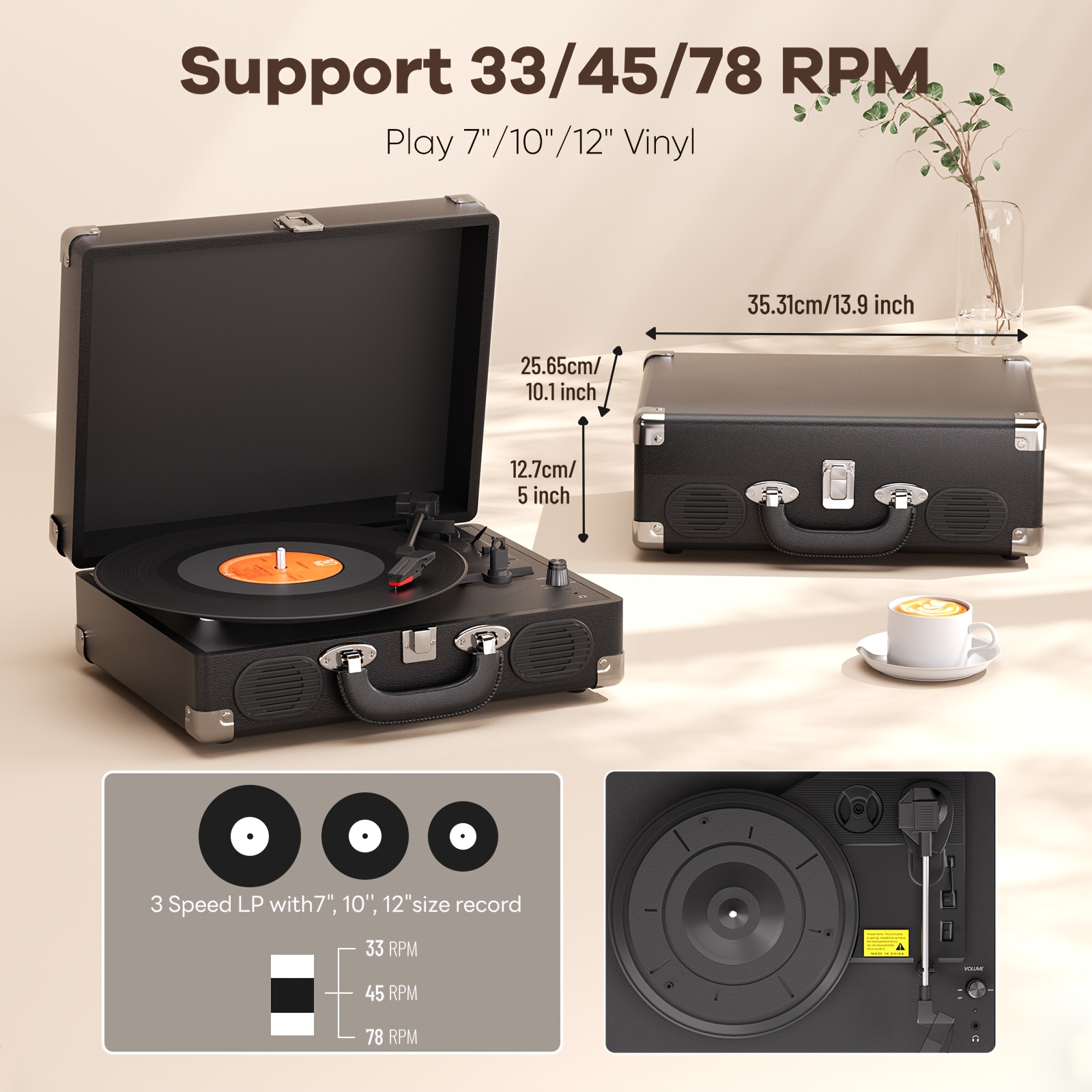 Specification: Maio S100 Vintage Turntable Record Player with Built-in Stereo Speaker & Belt-Driven Turntable – 3-Speed (33/45/78 RPM), AUX/Headphone Outputs, Compact Design – for Home, Parties, Gifts – Compatible with 7/10/12″ Records – Ideal for Beginners & Vinyl Enthusiasts
