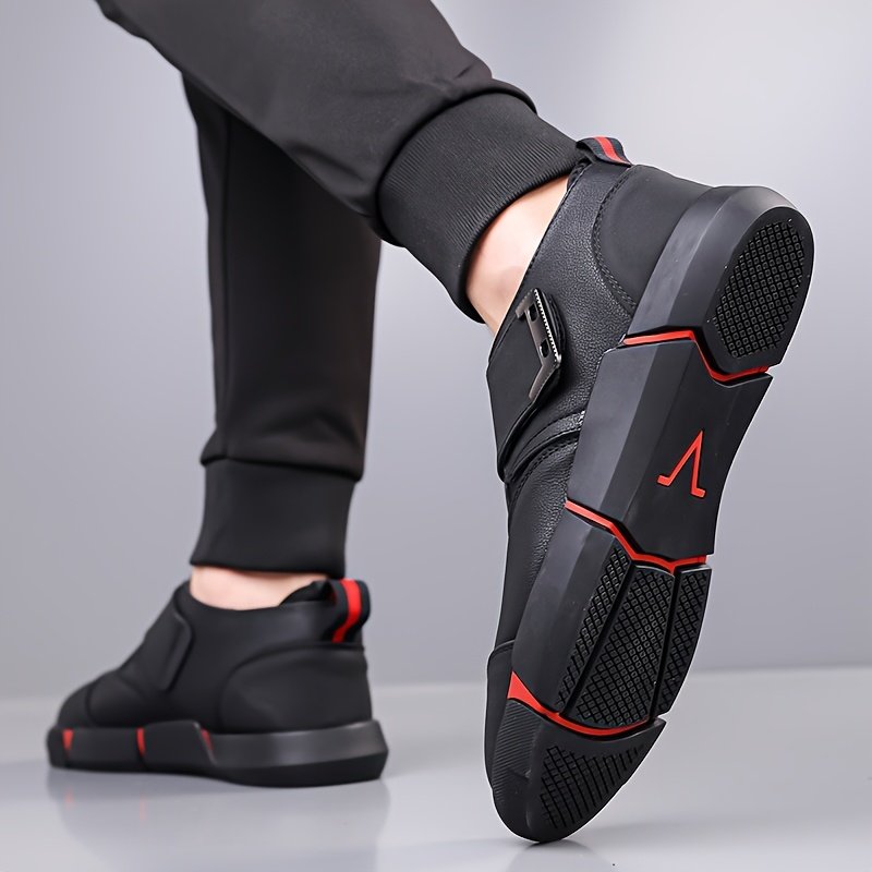 Men’S Casual Sneakers with Adjustable Hook-and-Loop Closure, Black & Red Accents, EVA Sole, Low-Top Design for All-Season Comfort – Perfect for Hiking & Outdoor Activities, Hiking Footwear | Stylish Casual Shoes | Durable Footwear