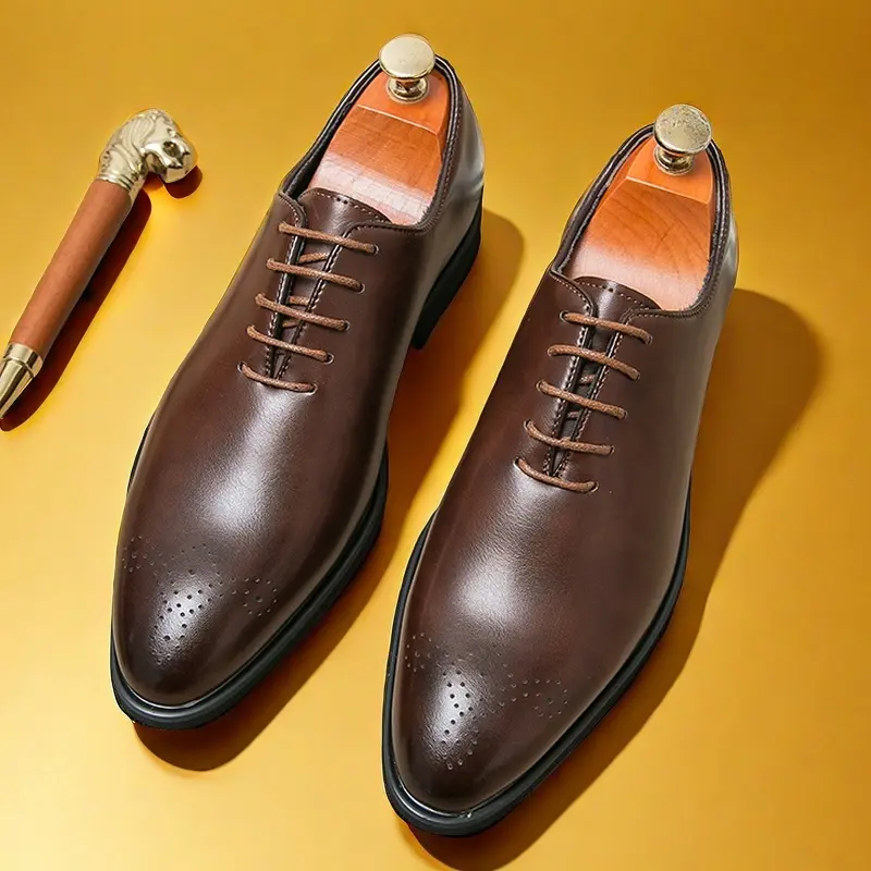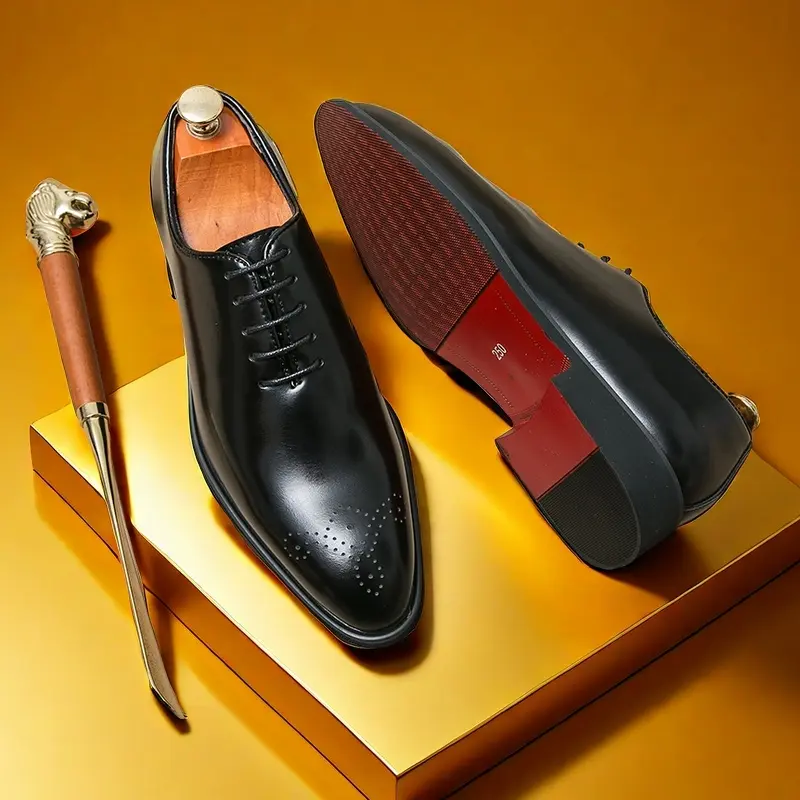 Men’S Classic Brogue Style Dress Shoes with Red Rubber Sole – Business Casual Footwear, Lace-Up, Perforated Detailing, Comfortable Faux Cover Upper