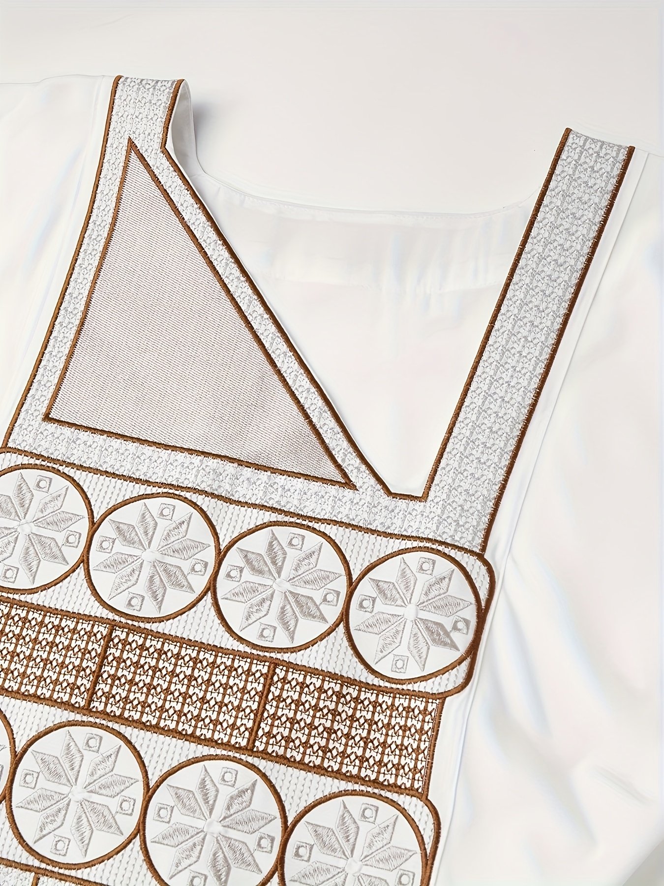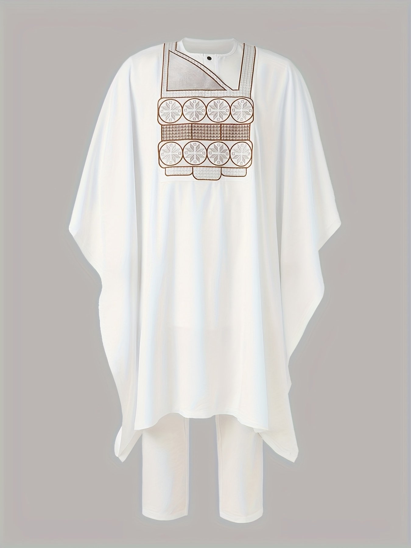 1 review for Men’s Elegant Nigerian Agbada Traditional 3pcs Set – White & Golden/Black/Beige Geometric Pattern Dashiki with Embroidery, Loose-Fit Long Coat & Matching Pants, Machine Washable for Weddings, Parties, Cultural Events – African Formal Attire, Nigerian Clothes For Men, African Outfit For Men