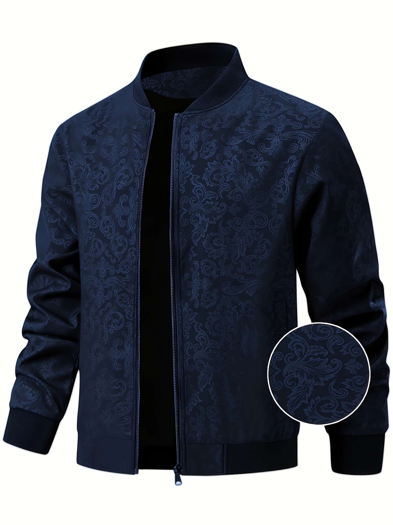 Men’s Heavy-Duty Bomber Jacket – All-Season Zip-Up Flight Coat with Baseball collar, Navy Blue Casual Pilot Jacket for Urban, Outdoor, Party – Machine Washable Bomber Jacket for Men & Teens, Durable Textile