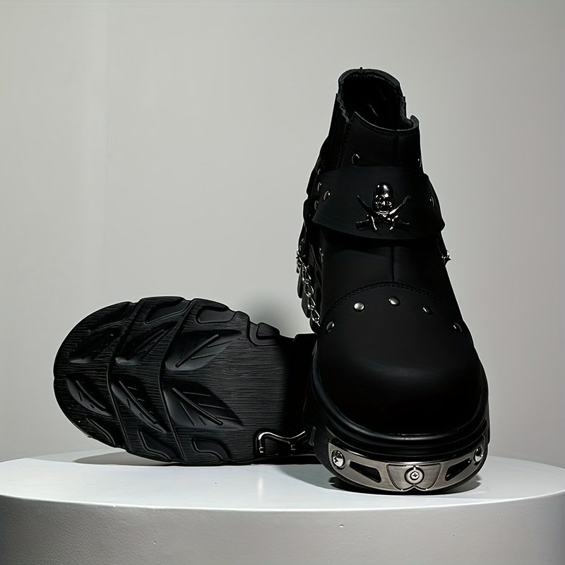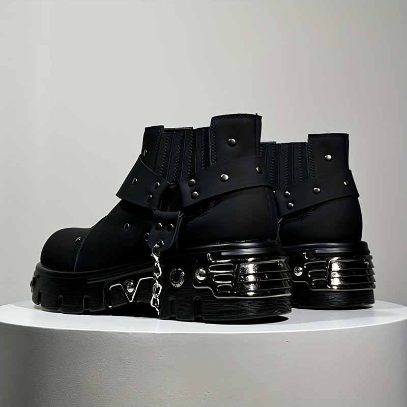 Specification: Men’s Slip-On Casual Boots with Ankle Strap & Buckle Closure – Chunky Upper, Chunky Rubber Sole, All-Season Round Toe Boots for Outdoor Hiking, Urban Streetwear & Everyday Comfort – Durable All-Terrain Traction (Black)