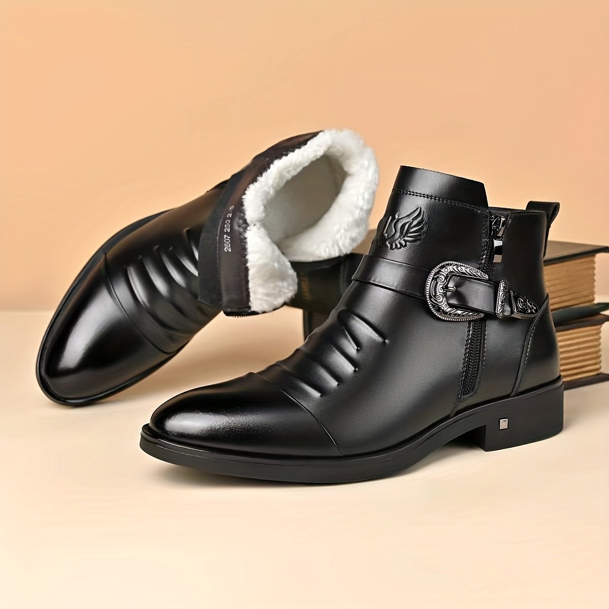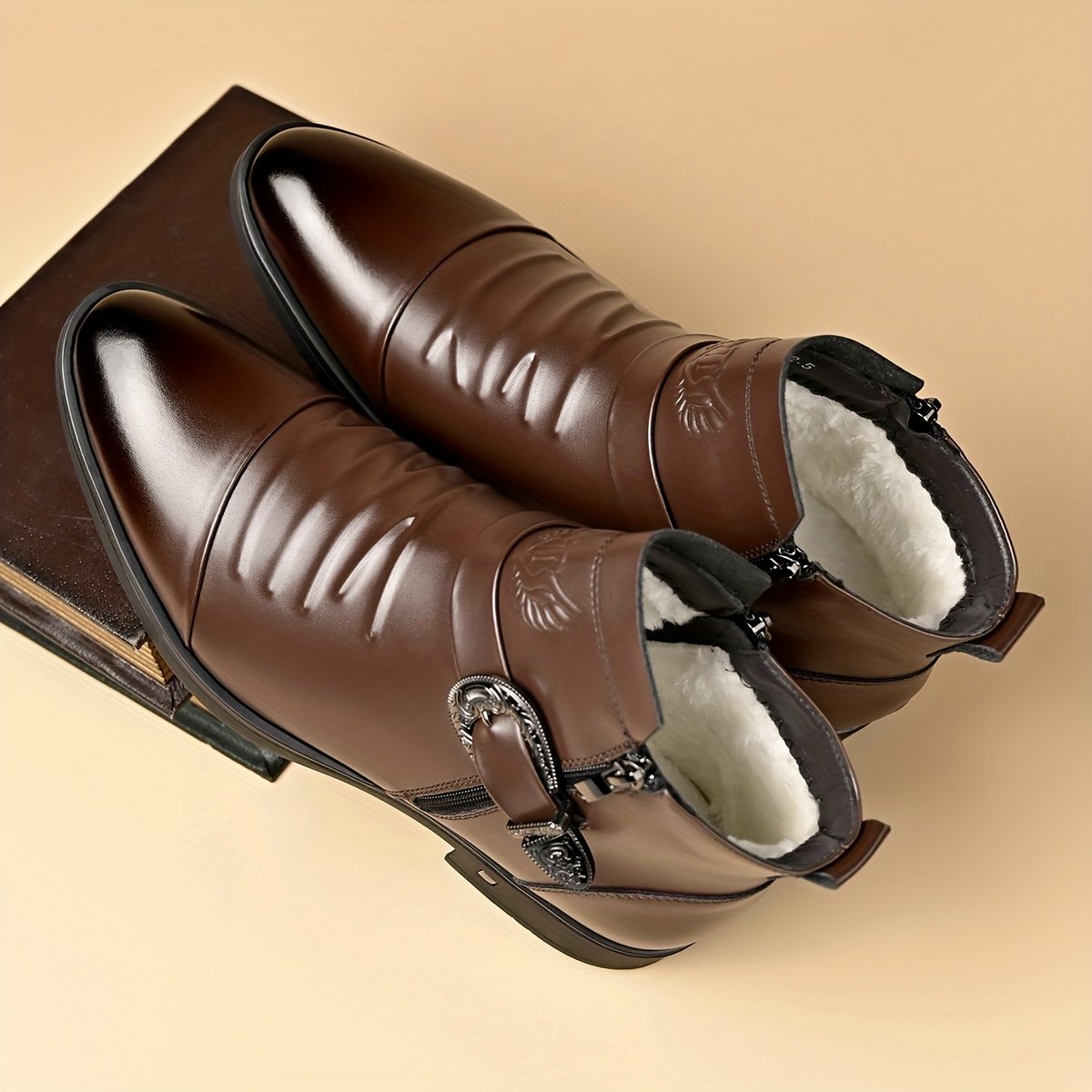 ![[Men's Vintage Western Boots] Men's Vintage Western Style Ankle Boots with a Convenient Side Zipper and Ornate Carved Buckle, Featuring a Pointed Toe and Unique Pleated Vamp for a Stylish Biker Formal Look](https://img.kwcdn.com/product/open/8f8d5b2ce050454da1fc46d2ca81eb67-goods.jpeg)