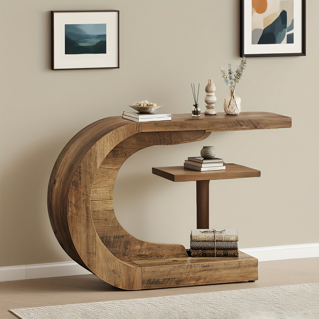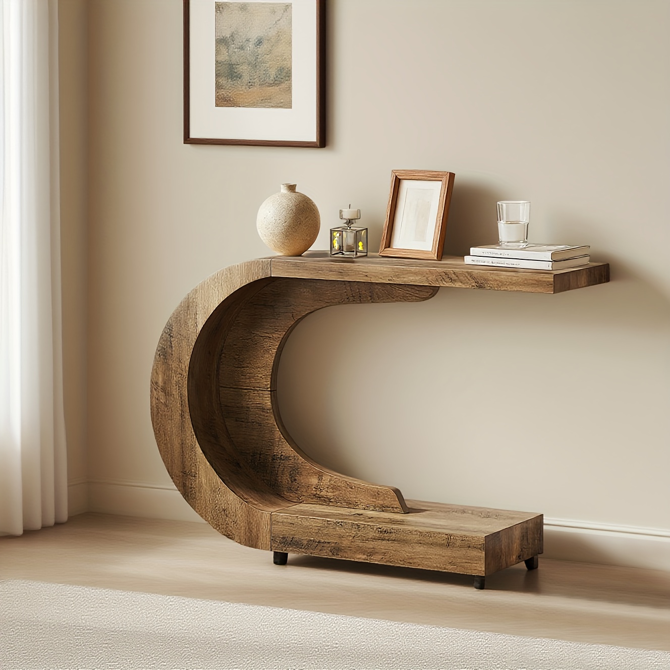 Be the first to review “Mid-Century Modern Console Table For Entryway, Wood C-Shaped Hallway Entry Accent Table For Living Room, Entrance, Foyer, Easy Assembly, Brown”