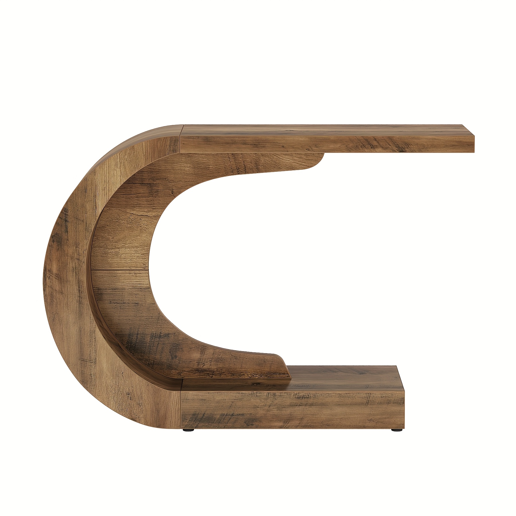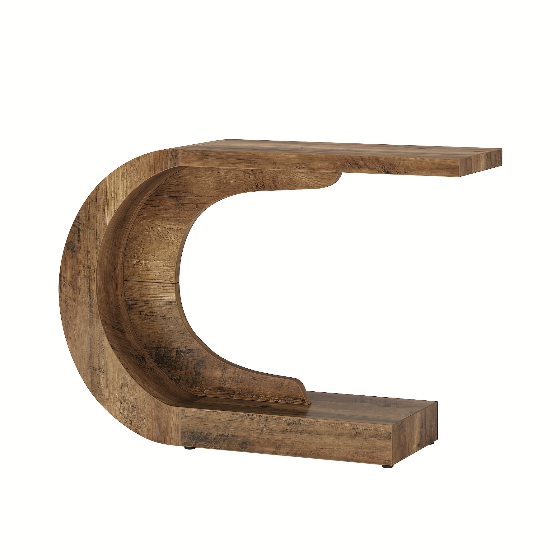 Mid-Century Modern Console Table For Entryway, Wood C-Shaped Hallway Entry Accent Table For Living Room, Entrance, Foyer, Easy Assembly, Brown