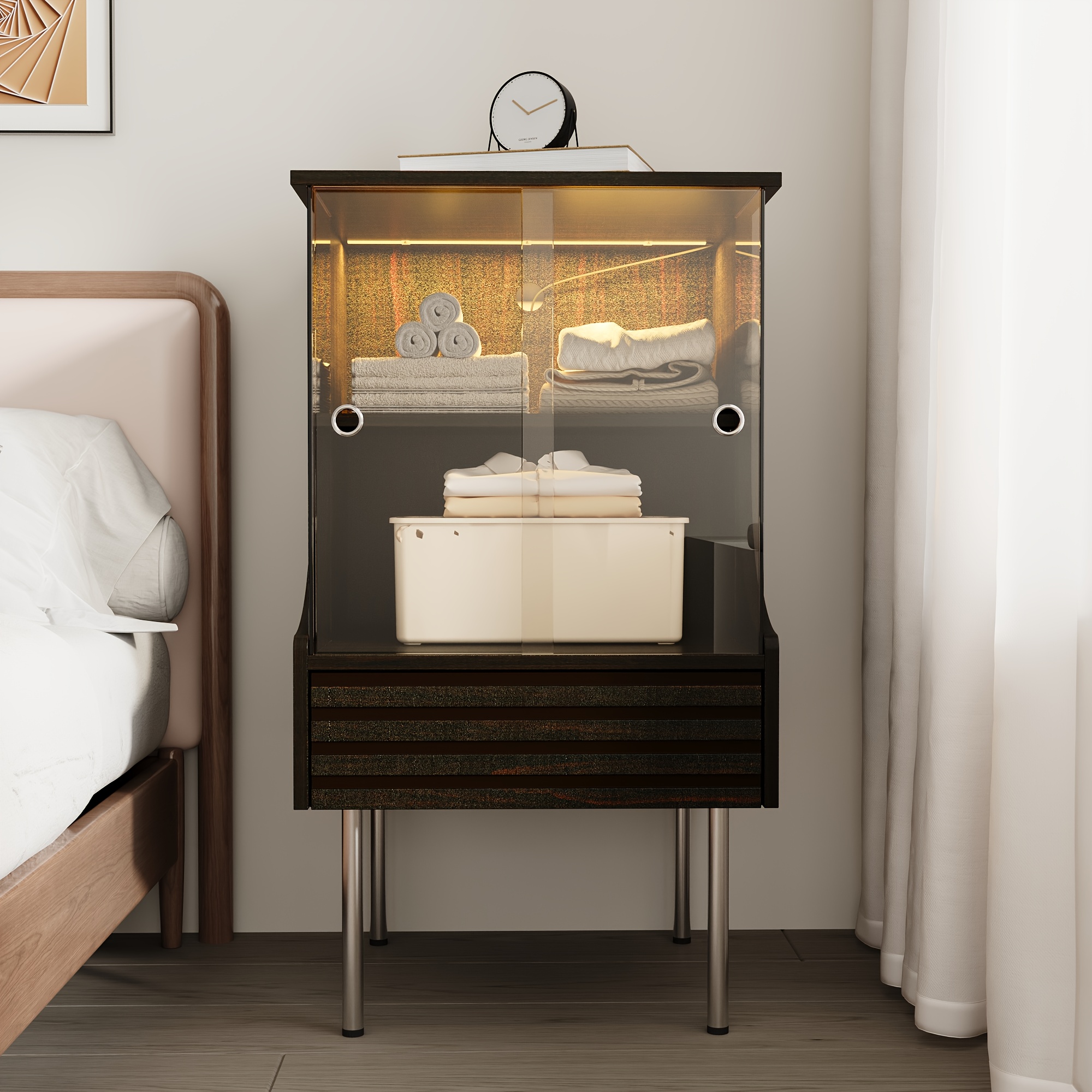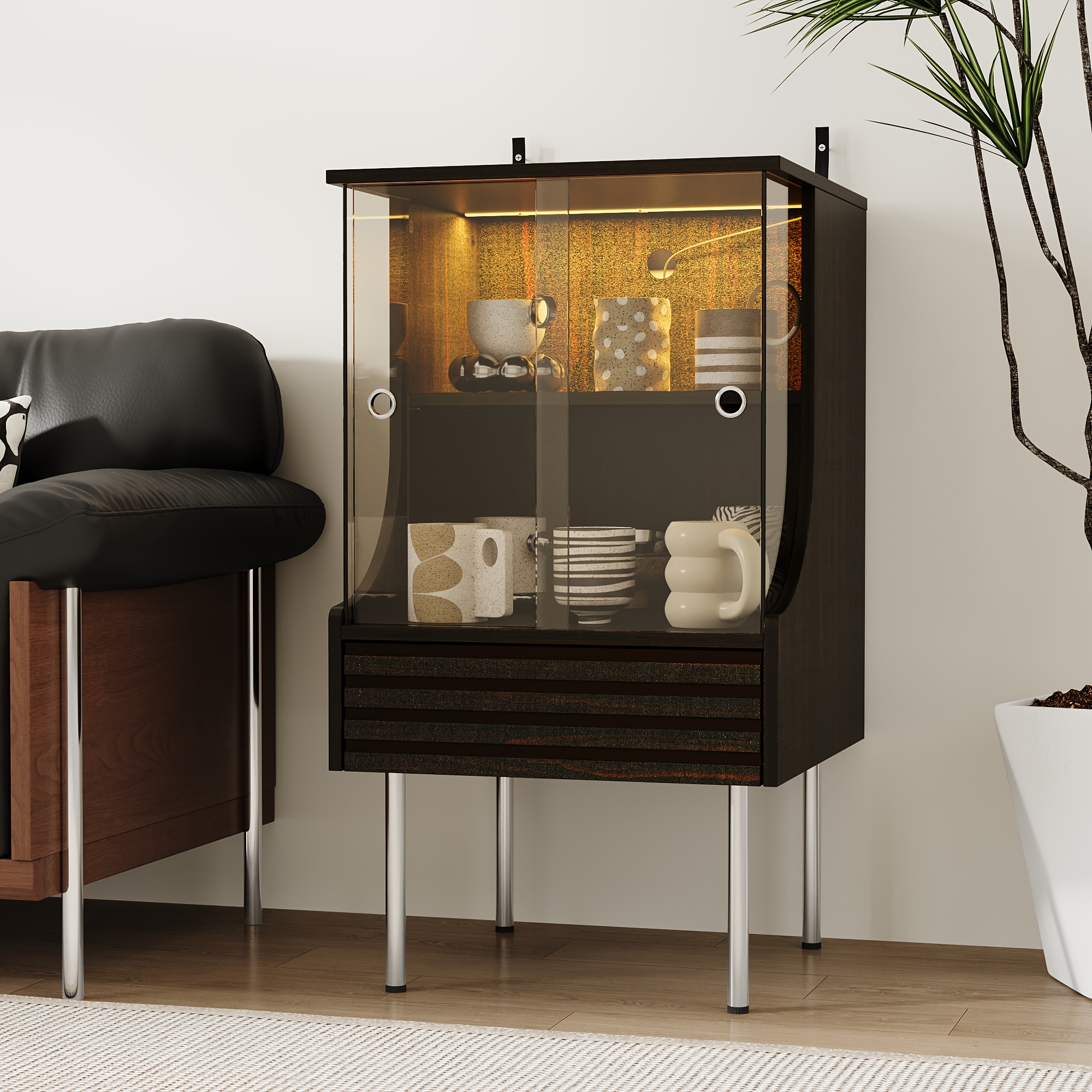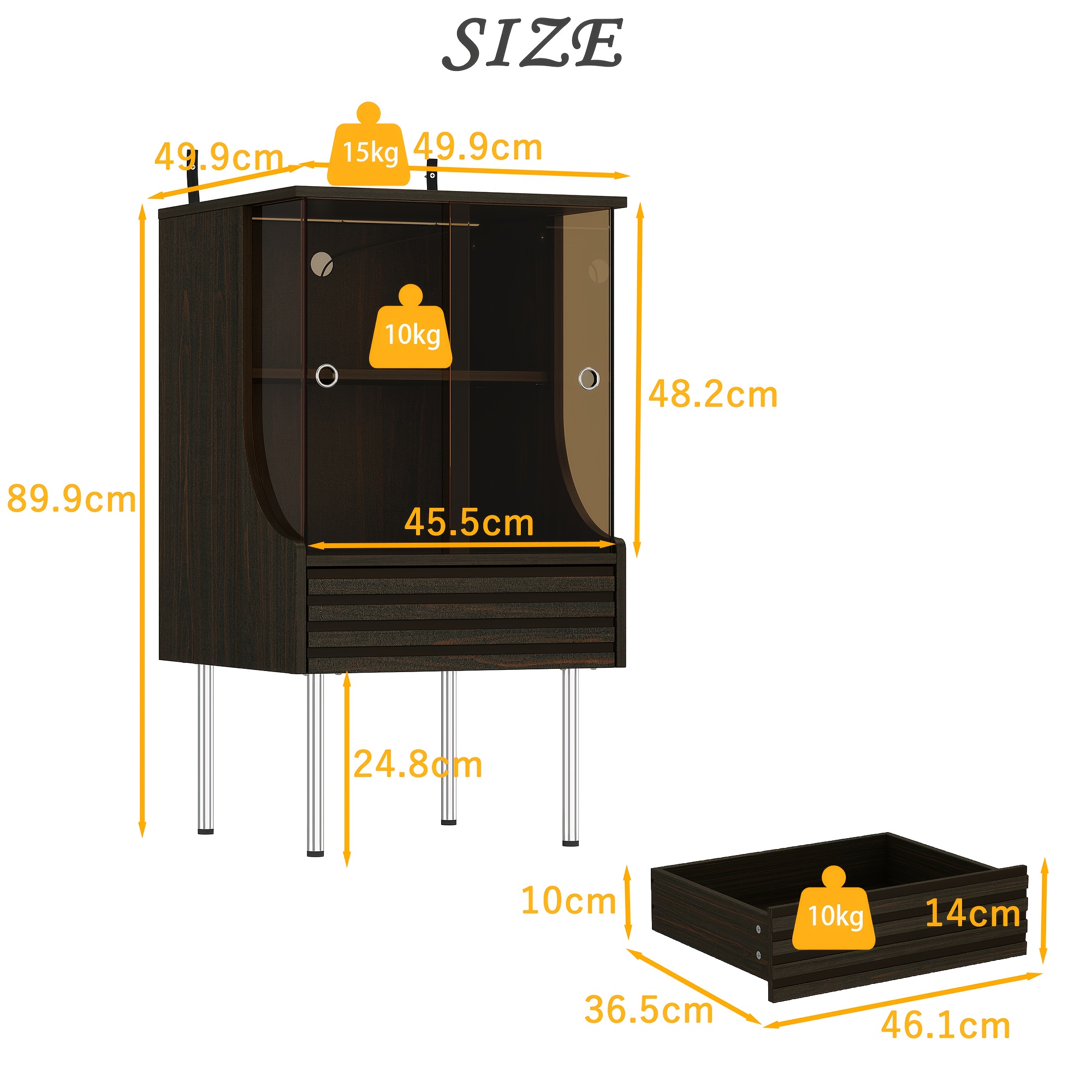 Quality and Safety: The drawer at the bottom features an anti-derailment design, the edges of the glass door are smoothed, and the metal legs come with anti-slip pads to prevent shaking and unusual sounds while in use.