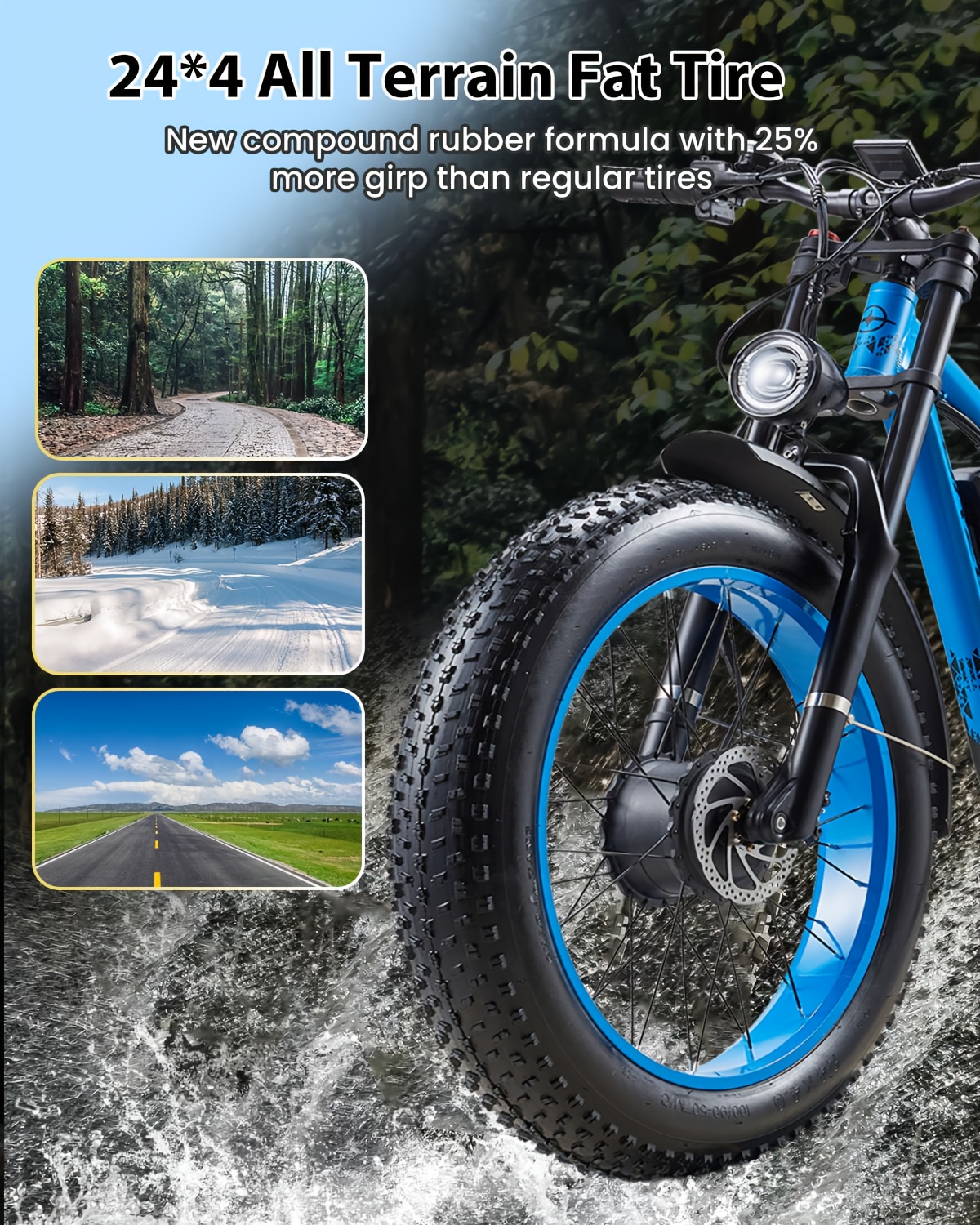 ORZEL K17 Electric Bike for Adults, 749W US-Legal Motor, 48V 25Ah Removable Battery, Shimano 7-Speed, All-Terrain 24″x4″ Tires, Hydraulic Disc Brakes – Blue/Silvery, Electric Bike for Men, Electric Bike Foldable, Commuter Bike, Offroad Cycling, Modern Ebike, Sleek Design, Alloy Steel Wheels, Durable Construction, Adult Ebike, Electric Dirt Bike For Men, Electric Bicycle For Men, E Bike, Free
