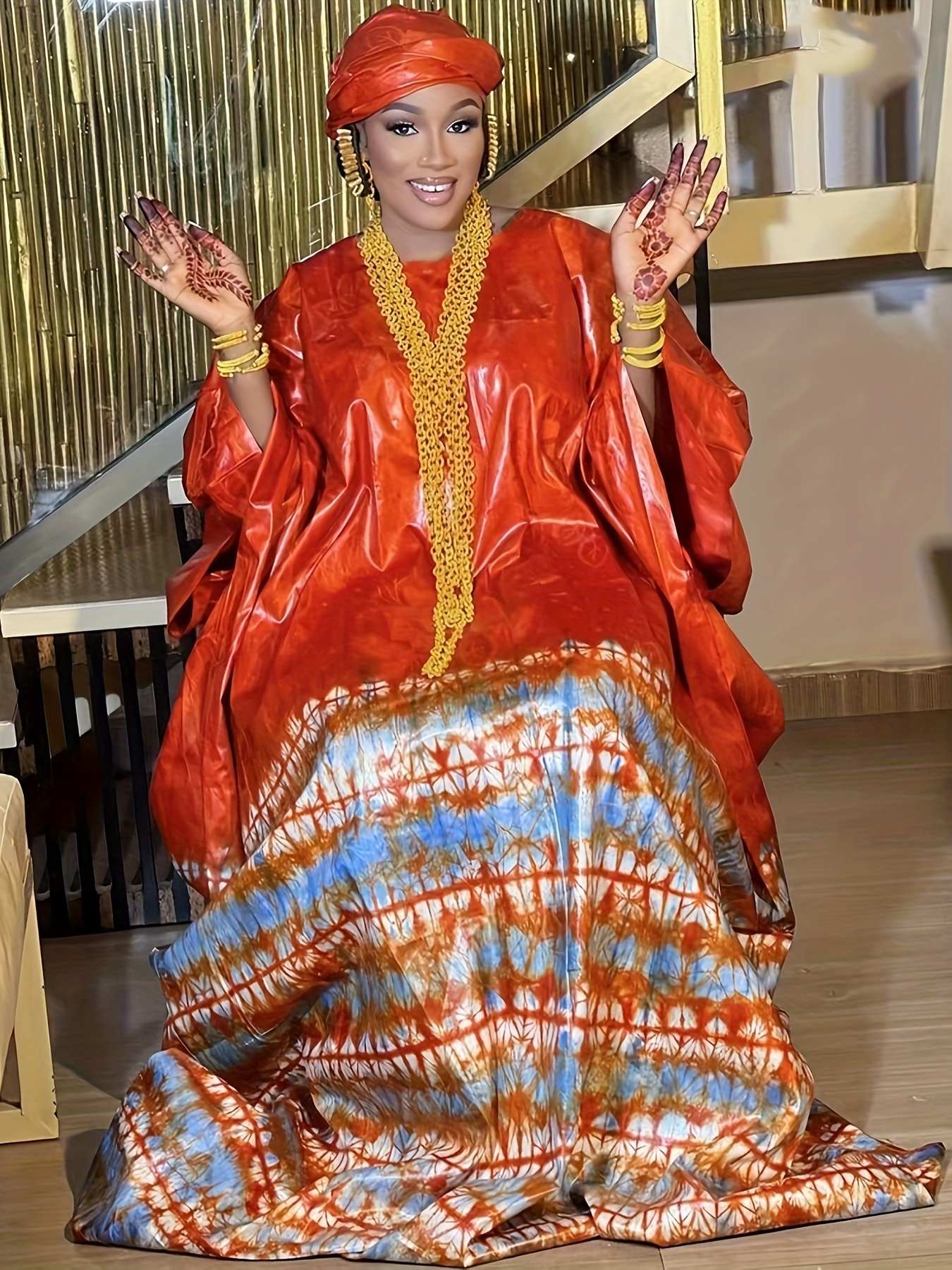 Plus Size, Women’s Nigerian Dashiki Robe – Traditional African Long Dress with Scarf Wrap, Vibrant Orange/Blue/ Yellow/Black/White/Red/Beige/Gray/ – Loose Fit Party & Everyday Formal Attire – Hand Washable Cultural Clothing for Women