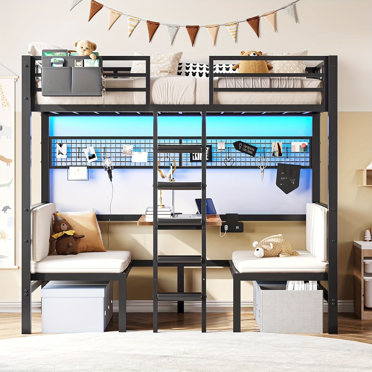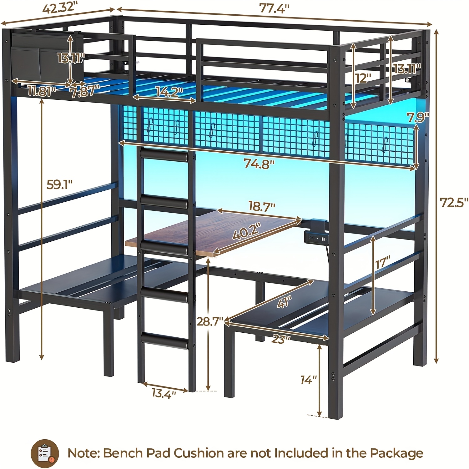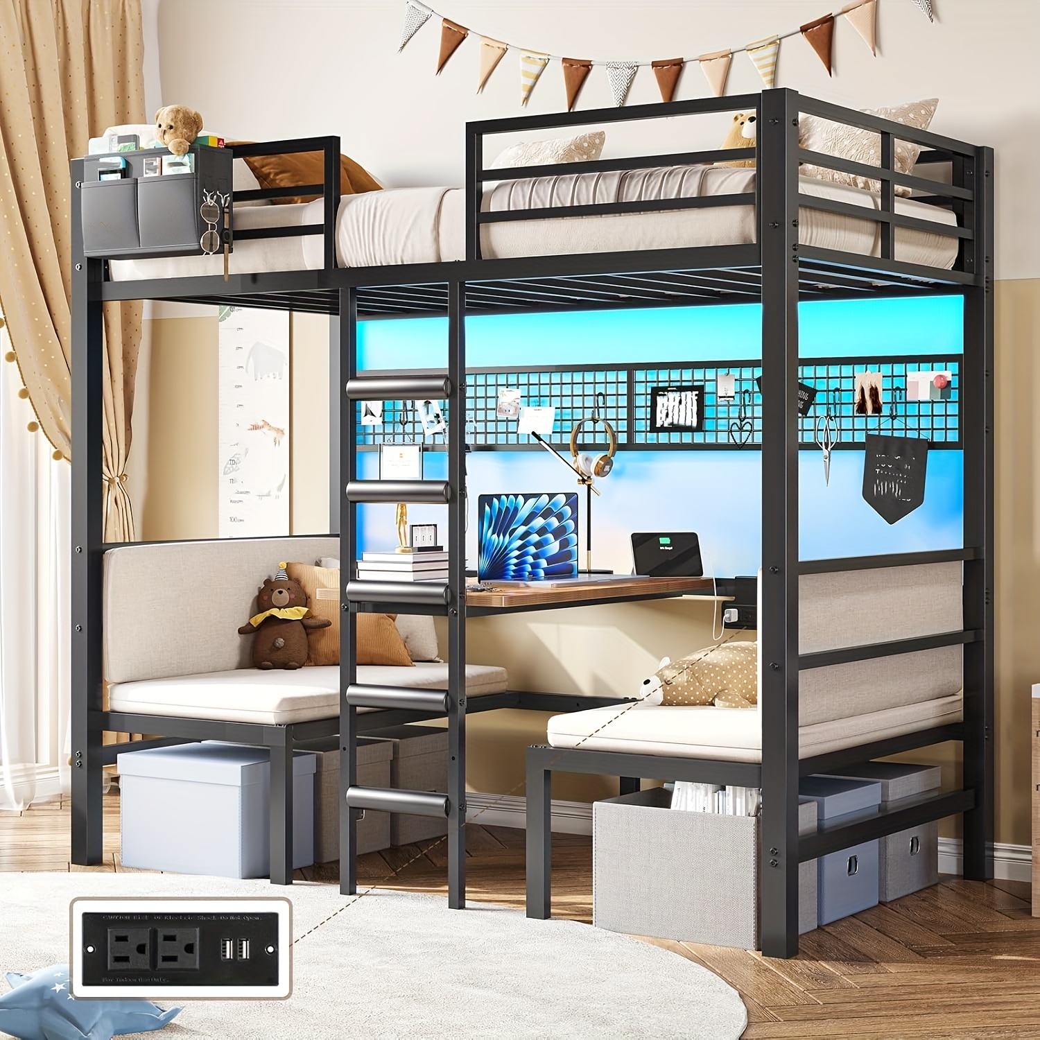 Space-Saving Heavy-Duty Metal Loft Bed with Convertible Desk & Built-In Charging Station (2 USB/2 AC), APP/Key-Controlled RGB LED Lights, Safety Guardrails - Twin Over Twin Bunk Bed for Adults, Teens, Dorms, Small Rooms - No Wood Components, Easy Assembly, Dorm Room Furniture, Contemporary Bedroom Furniture, Safetyenhanced DesignSpace-Saving Heavy-Duty Metal Loft Bed with Convertible Desk & Built-In Charging Station (2 USB/2 AC), APP/Key-Controlled RGB LED Lights, Safety Guardrails - Twin Over Twin Bunk Bed for Adults, Teens, Dorms, Small Rooms - No Wood Components, Easy Assembly, Dorm Room Furniture, Contemporary Bedroom Furniture, Safetyenhanced Design