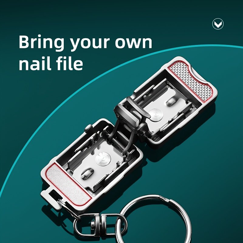 Stainless Steel Fingernail Clippers with Nail File, Concave Blade, Modern Design, Foldable & Portable with Key Ring Accessory, Unscented, for Home & Travel Use