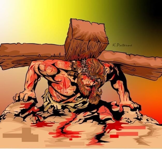 This is a digital adobe Illustrator artwork depicts the third fall of Jesus Christ on His way to Golgotha